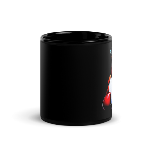 Boxing Kangaroo Black Glossy Mug